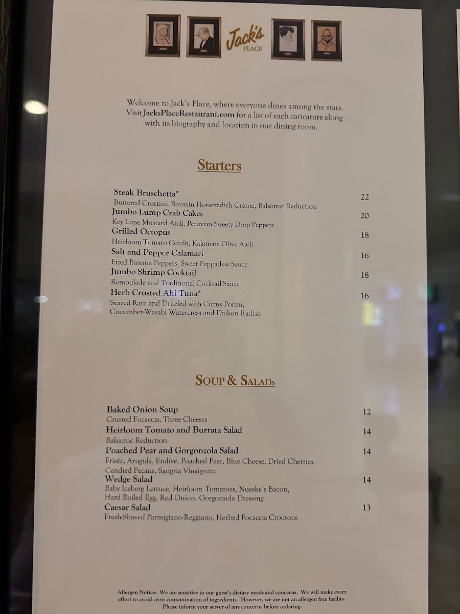 “ We visited 1/17/25 for our son's 16th birthday. We were a little nervous taking three boys (ages 10, 15, 16) but they were completely doted on! We had amazing service and I'm disappointed in myself for not remembering names to publicly recognize our waiter and the caricature artist. We all loved looking at the art on the wall and it gave the boys something to do- guessing caricatures from afar. It was a huge perk that personalized caricatures were complimentary. The artist was very kind and took special care to commemorate the special birthday. I highly recommend this restaurant for a romantic date night, special family celebration, girls' night out, or business dinner. ”